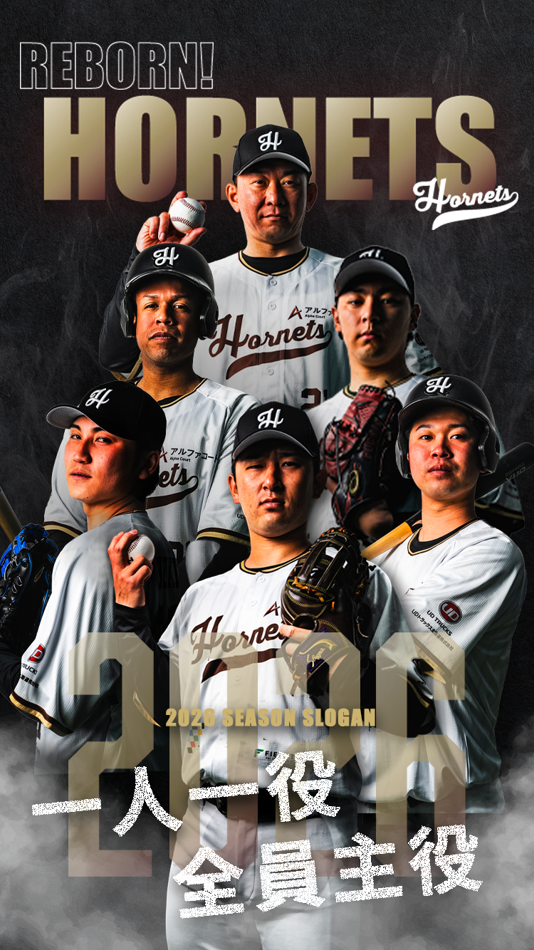 HORNETSのオフィシャルグッズをBASEオンラインショップで販売予定。ユニフォームレプリカ、Tシャツ、キャップなど。